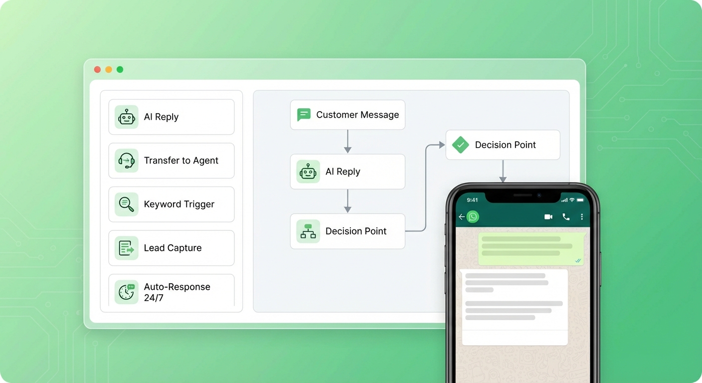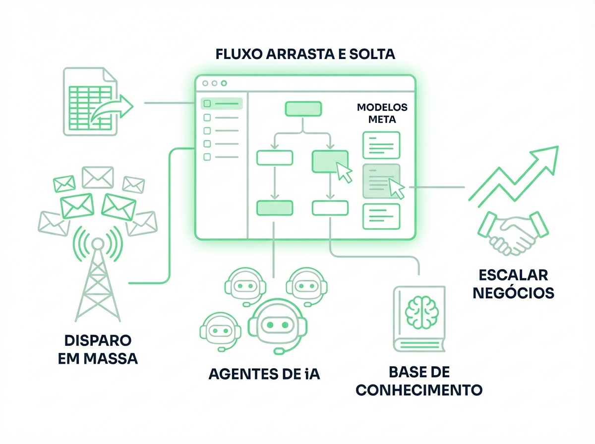 Crie chatbots para WhatsApp com inteligência artificial facilmente usando nosso criador de fluxos sem código, com recurso de arrastar e soltar. Automatize conversas, capture leads e interaja com clientes 24 horas por dia, 7 dias por semana. Tudo isso sem escrever uma linha de codigo.